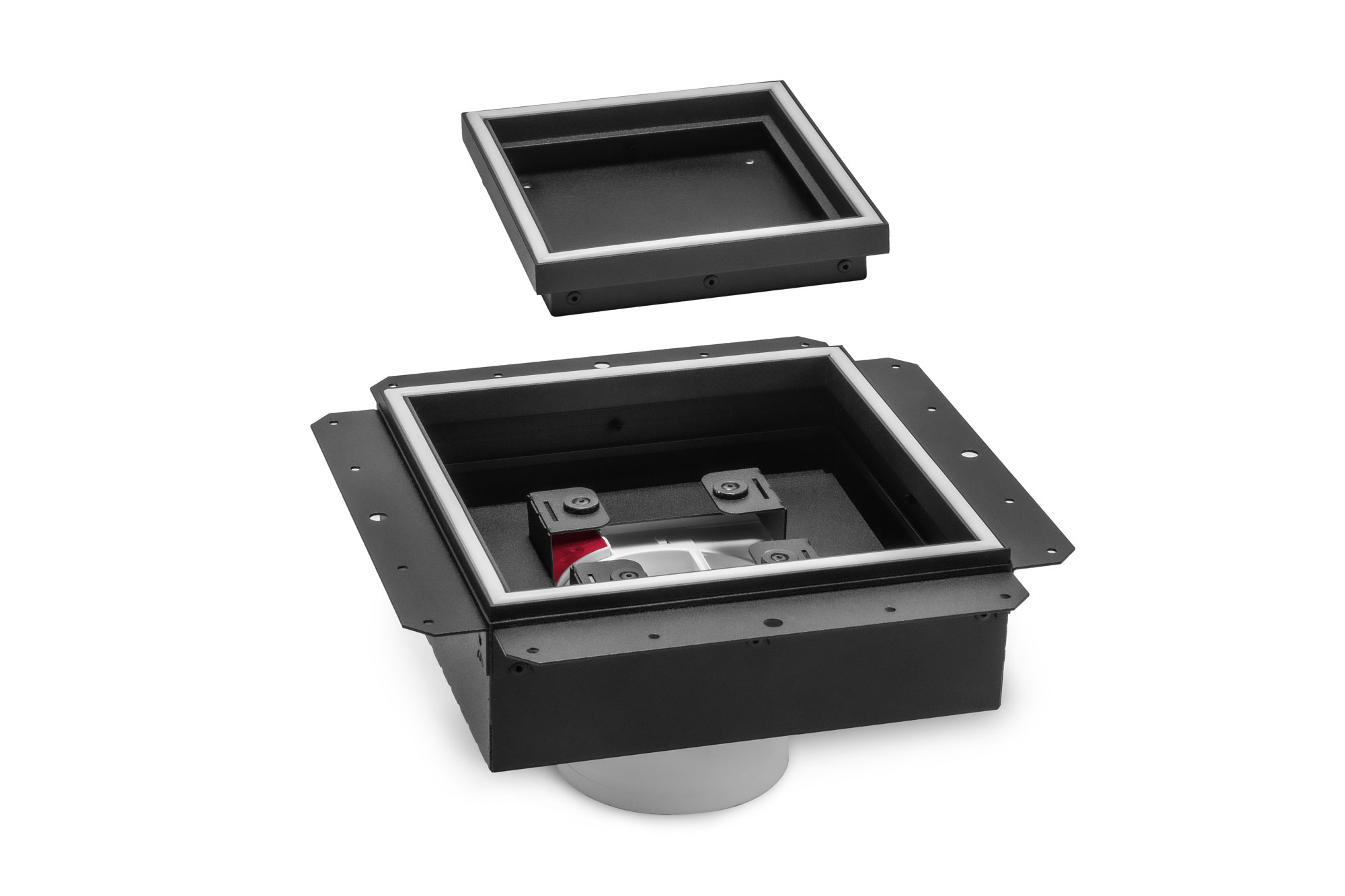 Для натяжных потолков любого типа. Скрытый монтаж с использованием адаптера (камеры статического давления).